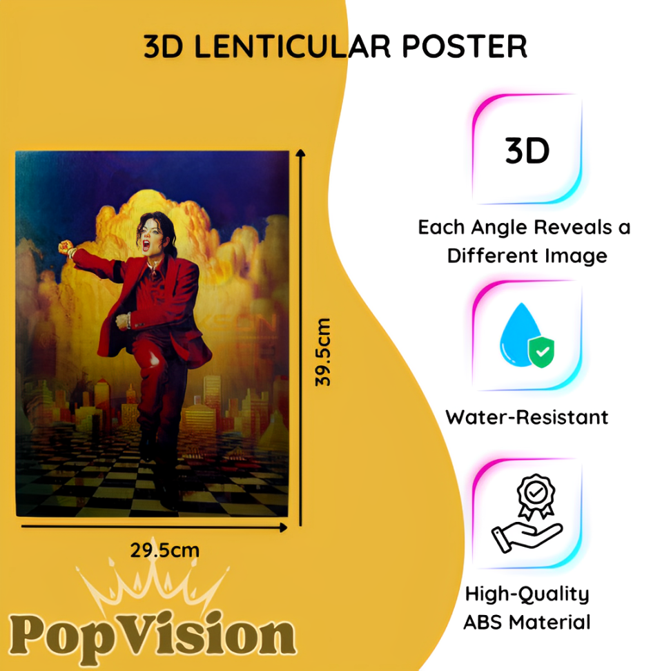 Experience dynamic imagery that shifts with every angle, capturing the essence of a legend. Made from durable, waterproof ABS material, this poster is designed for long-lasting quality and style.